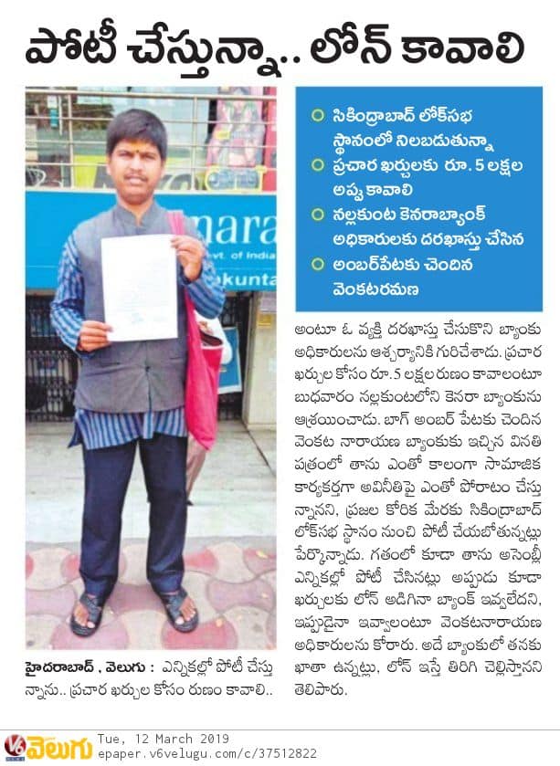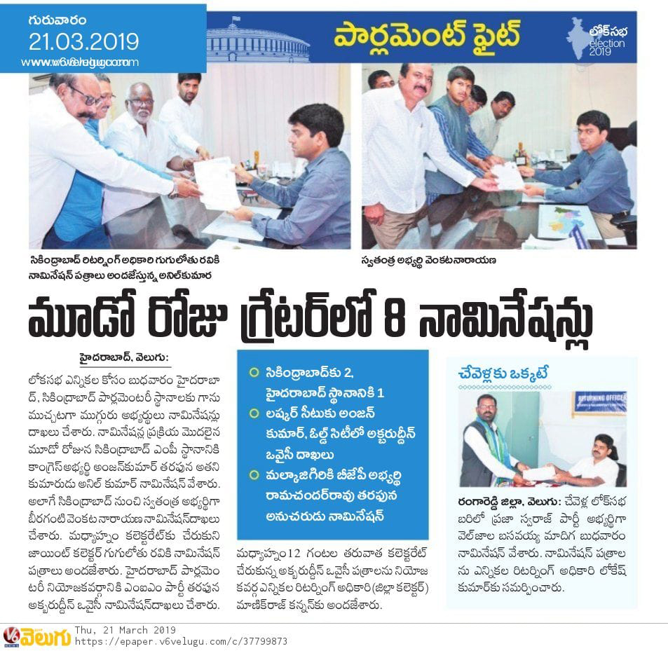సికింద్రాబాద్ M.P. అభ్యర్ధిగా పోటీ