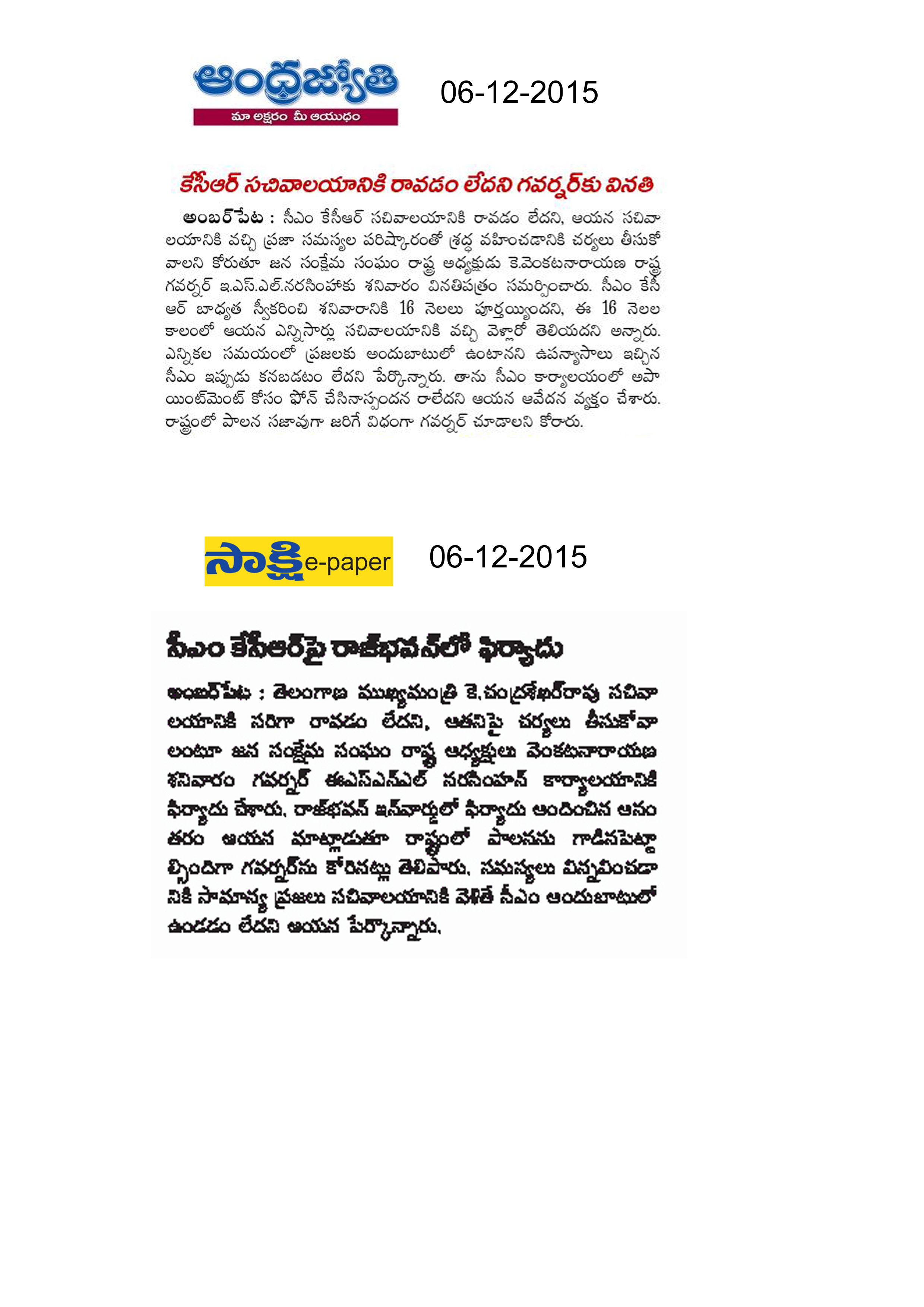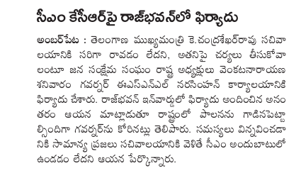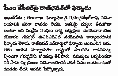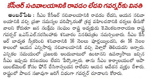 కె.సి.ఆర్ సచివాలయానికి రాకపోవడానికి వ్యతిరేకంగా