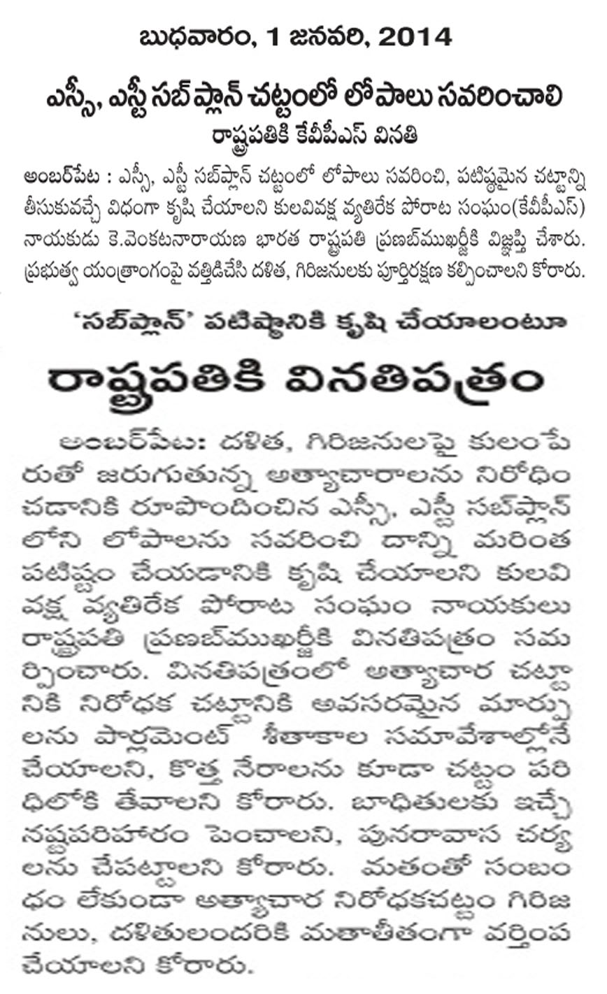 ఎస్.ఎస్టీ. సబ్ ప్లాన్ లోపాలను సవరించాలని.